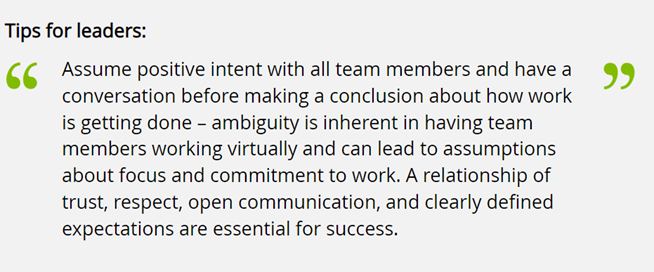 - E-leaders review, update and ensure clarity of roles and objectives within the team when working remotely.